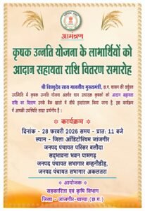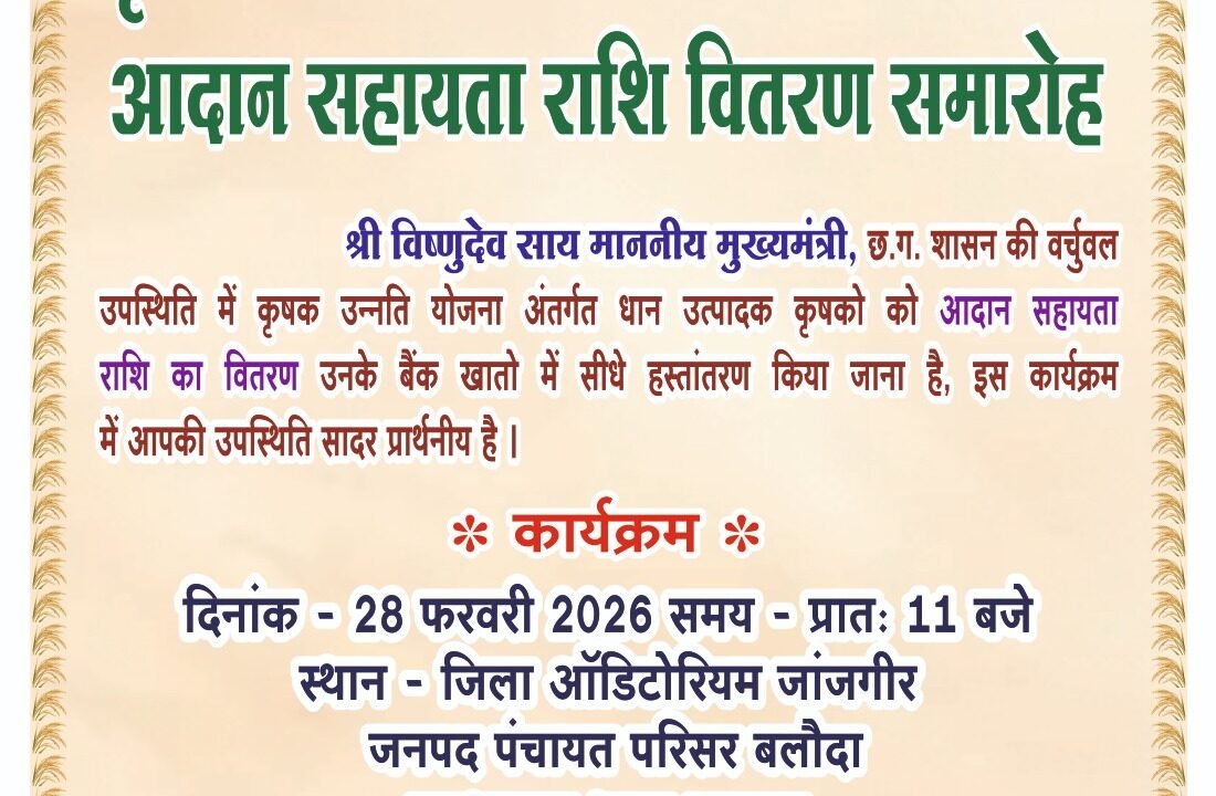 संवाददाता : जिला ब्यूरो चीफ, जांजगीर-चांपा। उदघोष समय न्यूज़, 27 फरवरी 2026। जांजगीर-चांपा। होली पर्व से पहले किसानों को बड़ी सौगात देते हुए मुख्यमंत्री श्री...