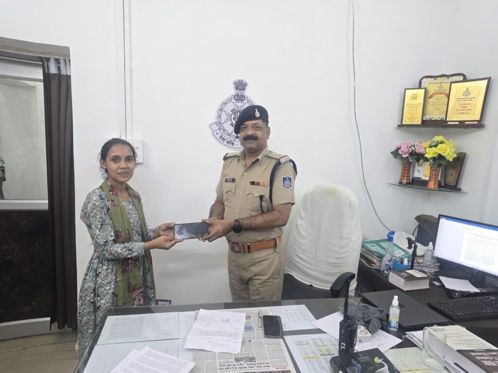 टी. आई. कोतवाली अरविन्द जैन के द्वारा कालेज छात्रा के गुम मोबाईल की रिपोर्ट सी.ई.आई.आर. पोर्टल में दर्ज की जाकर पतासाजी की गई एवं प्रधान आरक्षक महेन्द्र सिहं एवं आरंक्षक अब्दुल के द्वारा गुमा हुआ मोबाईल अनूपपुर से दस्तयाब कर छात्रा को सौंपा गया है। 15, 000 रूपये कीमती गुम हुए मोबाईल के प्राप्त होने पर कुमारी कौसर बानों द्वारा अनूपपुर पुलिस का आभार व्यक्त किया है।
