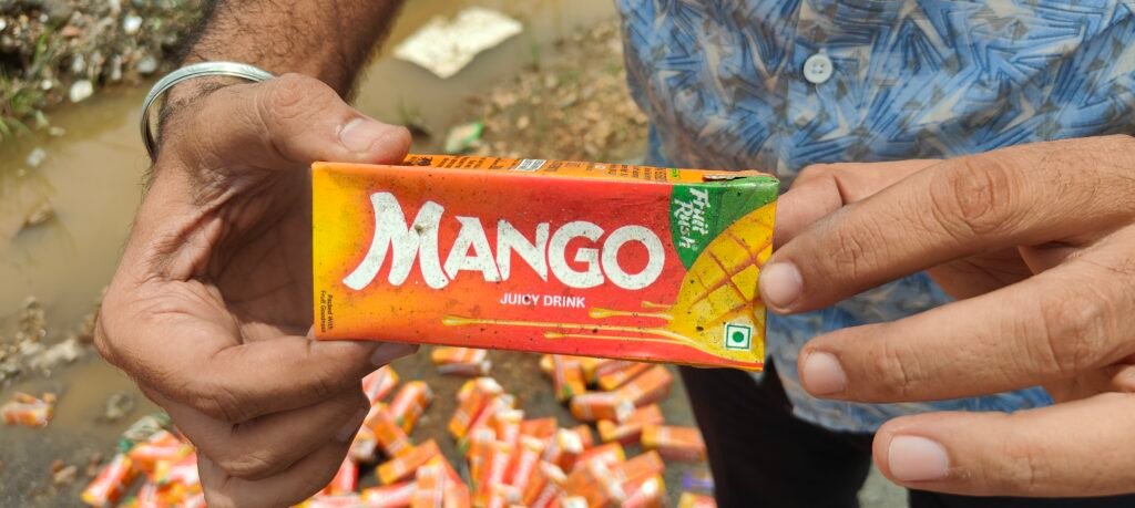 - सड़क के किनारे फैले इन पैक्ड जूस के साथ गंदगी और नाले का पानी मिलकर भयंकर बदबू फैला रहा है।