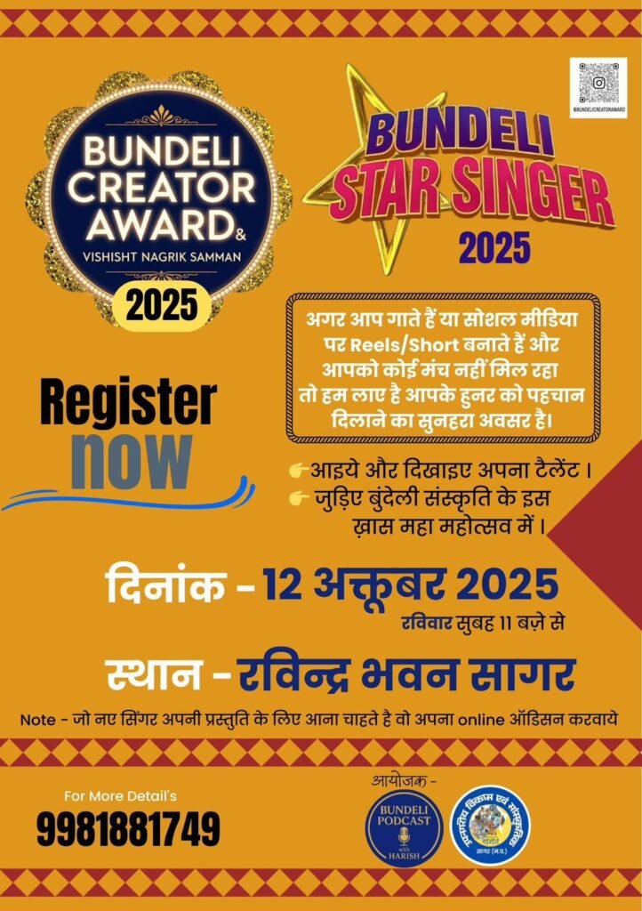 सागर में होगा बुंदेली क्रिएटर अवार्ड एवं बुंदेलखंड प्रतिभा सम्मान समारोह