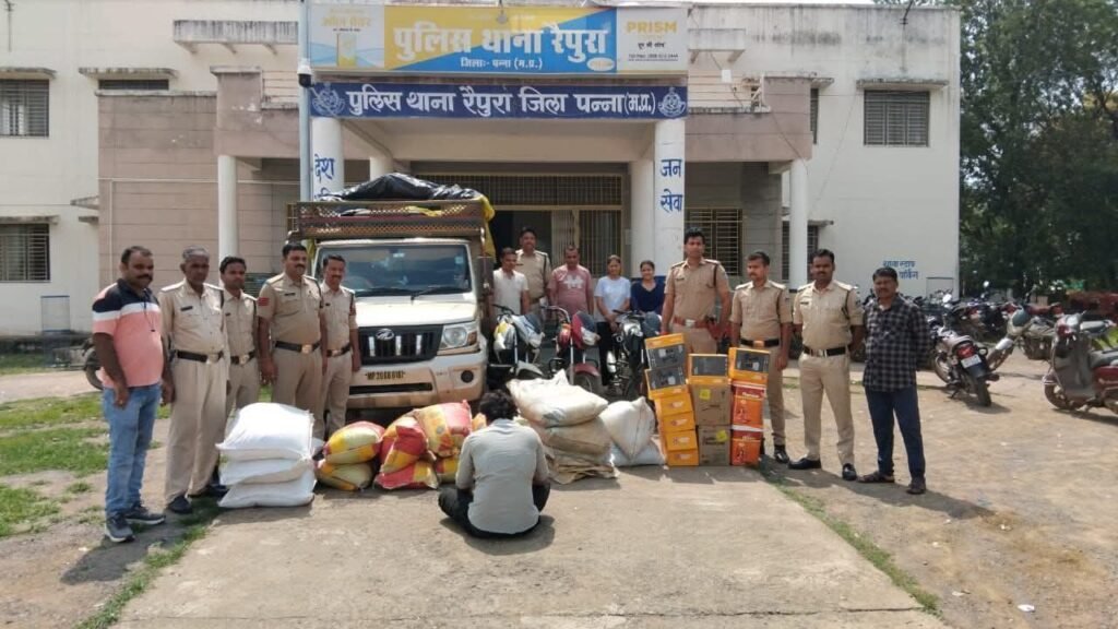 पुलिस अधीक्षक पन्ना श्रीमती निवेदिता नायडू के निर्देशन, अतिरिक्त पुलिस अधीक्षक पन्ना सुश्री वंदना चौहान के मार्गदर्शन में पन्ना पुलिस द्वारा थाना रैपुरा थाना क्षेत्र में रैपुरा दमोह रोड पर गुदरी टेक घाटी में ट्रको की तिरपाल काटकर चोरी करने वाले गिरोह का खुलासा किया गया है । मामले में 01 आरोपी को पुलिस द्वारा गिरफ्तार किया गया है ।