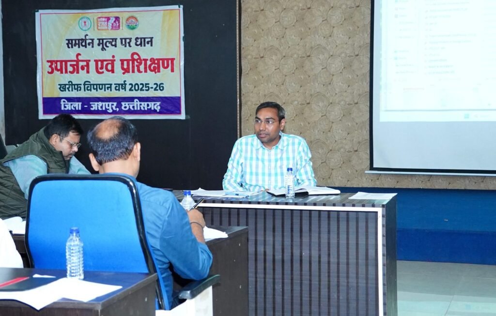 जशपुरनगर 08 नवम्बर 2025/ खरीफ विपणन वर्ष 2025-26 के तहत समर्थन मूल्य पर धान खरीदी की तैयारी को लेकर आज कलेक्टोरेट के मंत्रणा सभाकक्ष में प्रशिक्षण बैठक आयोजित की गई। बैठक की अध्यक्षता कलेक्टर श्री रोहित व्यास के