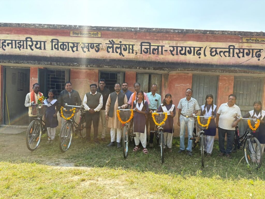 मुख्यमंत्री सरस्वती साइकिल योजना के तहत शासकीय हाई स्कूल गहनाझरिया में छात्रों को साइकिल वितरण किया गया, लैलूंगा तहसील के अंतर्गत ग्राम गहनाझरिया में आज दिनांक 13.11.25 को सभी छात्राओं को साइकिल वितरण किया गया जिसके मुख्य अतिथि के रूप में रायगढ़ जिला के जिला उपाध्यक्ष श्री