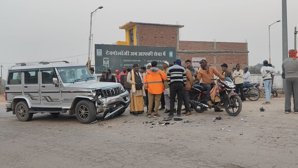 बोलेरो और दो पहिया बाइक की आमने-सामने जोरदार टक्कर से बाइक सवार गंभीर रूप से घायल