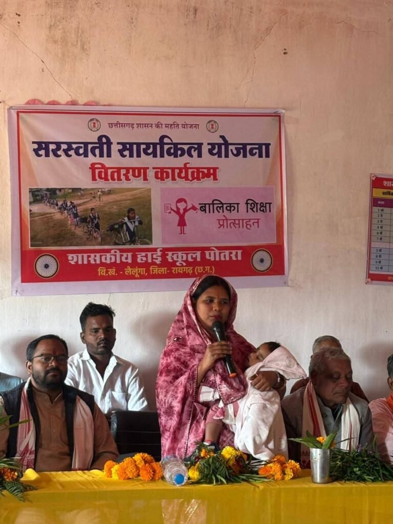 सरस्वती साइकिल योजना के तहत बालिकाओं को साइकिल वितरण, पोतरा एवं लैलूंगा ग्रामीण क्षेत्र में खुशियों की लहर लैलूंगा/पोतरा।ग्राम पोतरा हाईस्कूल एवं लैलूंगा स्वामी आत्मानंद हाईस्कूल में आज यशस्वी प्रधानमंत्री एवं मुख्यमंत्री जी की महत्वाकांक्षी सरस्वती साइकिल योजना के अंतर्गत बालिकाओं को साइकिल वितरण किया गया। यह कार्यक्रम ग्रामीण तथा शहरी दोनों क्षेत्रों की छात्राओं को शिक्षा के प्रति प्रोत्साहित करने के उद्देश्य से आयोजित किया गया।कार्यक्रम के