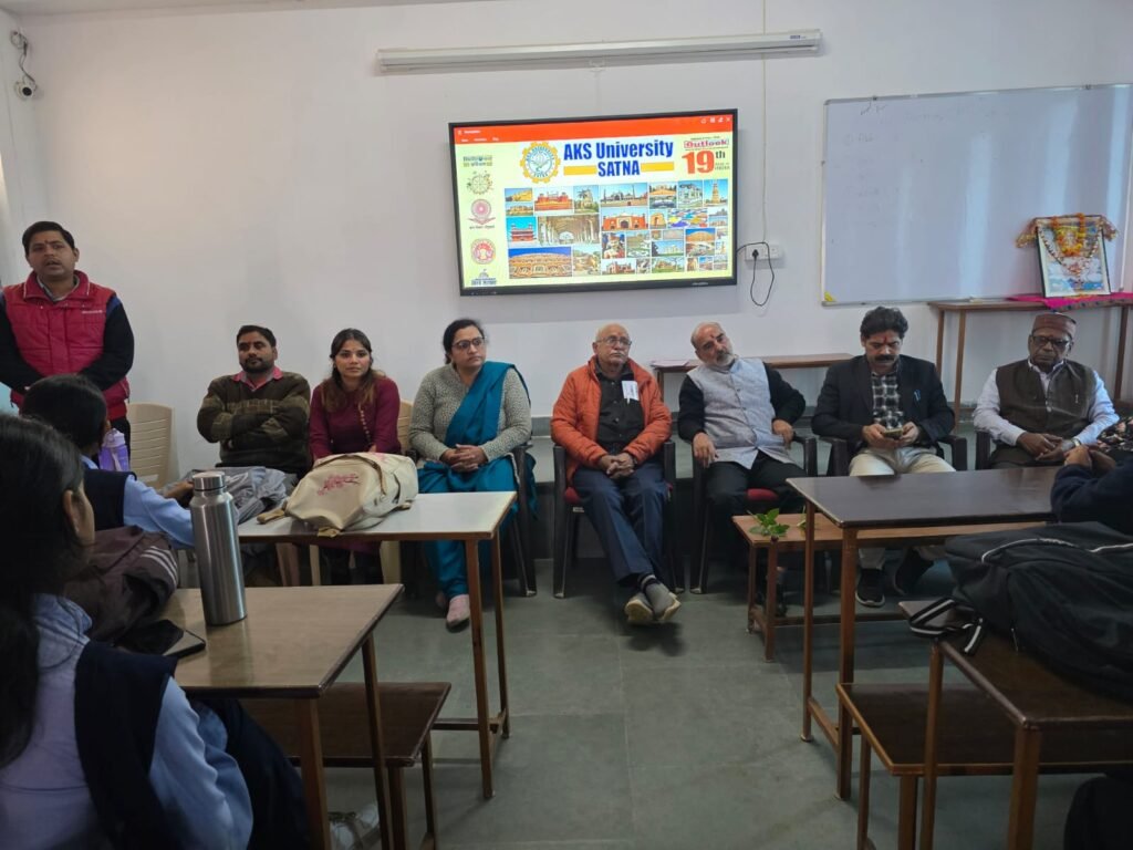 ए.के.एस. विश्वविद्यालय, सतना के मानविकी विभाग में कुलाधिपति श्री बी. पी. सोनी की दूरदर्शी सोच ‘विश्व सरकार : सार्वभौमिक शांति और सद्भाव’ पर आधारित संगोष्ठी का आयोजन विश्व विरासत सप्ताह के समापन समारोह के रूप में किया गया। कार्यक्रम की शुरुआत दीप प्रज्वलन और मां सरस्वती की वंदना से हुई, जिसके बाद उप अधिष्ठाता छात्र कल्याण श्री गौरव सिंह ने संगोष्ठी की रूपरेखा प्रस्तुत की।