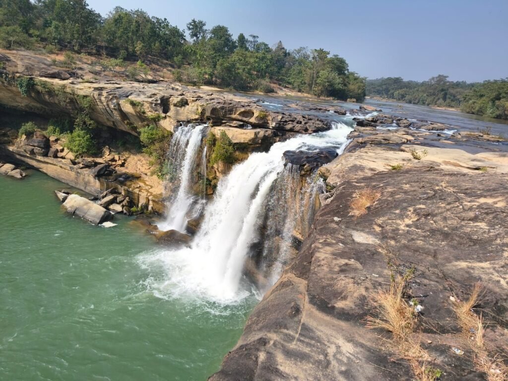 कोरिया जिले में स्थित इस जलप्रपात की कहानी हसदो के उद्गम से शुरू होती है। सड़क मार्ग से जब हम यहां से हसदो उद्गम पहुंचने के लिए सोनहत की पहाड़ियों की ओर लगभग 50 किलोमीटर की दूरी तय करते हैं तब हमें सोनहत की पहाड़ी की तराई में बसे ग्राम मेन्ड्रा के खेत के मेंढ़ में (लकड़ियों से बांधकर बनाई गई) ढोढ़ी में भरे पानी से पतली धार के रूप में निकलती एक जलधारा दिखाई देती है। गांव वाले इसे हसदो का उद्गम कहते हैं। जी हां यह वही नदी है जो आगे चलकर कोरबा के पास बांगो नदी से मिलकर बांगो बांध बनाती है और देश को ऊर्जा देने वाली नदियों का सम्मान पाती है। पहले यहां एक महुआ का पेड़ था जो लगातार पानी बहने एवं दलदली जमीन के कारण अब गिर चुका है। हसदो उद्गम के आसपास कई छोटी-छोटी जलधाराएं निकलकर हसदो के मुख्य धारा को समृद्ध करती हुई हमें दिखाई पड़ती हैं। कैमूर की पहाड़ियों की बिखरी पहाड़ियों में शामिल सोनहत की पहाड़ी से दो नदियां गोपद और हसदो अलग-अलग दिशा की ओर निकलकर आगे बढ़ती है। एक ही पहाड़ी से निकलने वाली गोपद और हसदो की कहानी भी काफी दिलचस्प है। उत्तर दिशा से निकलकर गोपद आगे बढ़ते हुए सोन और गंगा में मिल जाती है और इसी पहाड़ी के दक्षिण दिशा से निकलकर हसदो आगे बढ़ती हुई महानदी बेसिन का हिस्सा बन जाती है। प्रकृति का यह करिश्मा हमें सोनहत की पहाड़ियों में दिखाई पड़ता है, जो एक माता की दो संतानों की अलग-अलग दिशा में चलने और फलने फूलने की कहानियों को समृद्ध करता है।