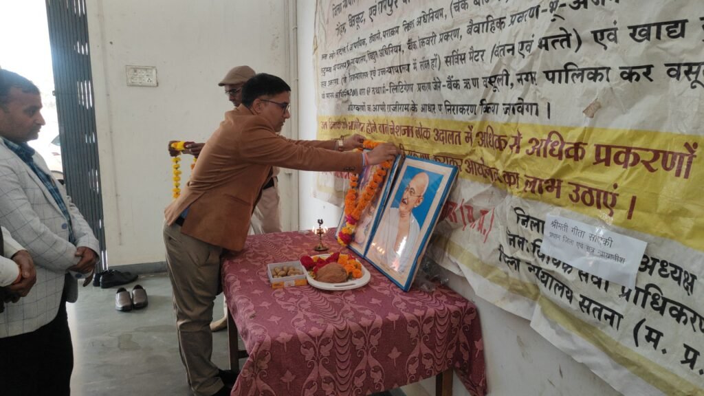 चित्रकूट-  म.प्र. विधिक सेवा प्राधिकरण के निर्देशन पर जिला विधिक सेवा प्राधिकरण के नेतृत्व में आज तहसील विधिक सेवा प्राधिकरण चित्रकूट द्वारा न्यायालय परिसर में वरिष्ठ खंड के न्यायिक मजिस्ट्रेट राम औतार पटेल द्वारा महात्मा गांधी की प्रतिमा पर माल्यार्पण कर  दीप प्रज्वलित कर लोक अदालत का शुभारंभ किया गया, इस अवसर पर कनिष्ठ खंड के मजिस्ट्रेट