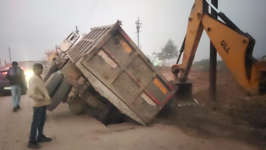 चित्रकूट- में विकास कार्य कर रही निर्माण एजेंसियां श्रद्धालुओं के साथ बड़े हादसे करवाने की कसम खा कर बैठी हैं जिम्मेदार अधिकारी इनको खुली छूट दिए हुए हैं लगातार शिकायतों के बाद सीवर लाइन पर कोई कार्यवाही नहीं हो रही है एक बार फिर सीवर लाइन निर्माण एजेंसी की घोर लापरवाही के चलते बड़ा हादसा टला है, बीच सड़क में सीवर के चेंबर के बगल से सड़क में आधा ट्रक समा गया है, बगल से गुजर रही दो चार पहिया वाहन दबने से बची है, ट्रक पलटता तो लगभग 4 से 6  जान जा सकती थी, आधा ट्रक सड़क में समा गया है, चित्रकूट थाना क्षेत्र के अच्छे बाईपास का मामला है, सीवर लाइन निर्माण एजेंसी की घोर लापरवाही के चलते लगातार कई बड़े हादसे टले हैं प्रशासनिक अधिकारी मौन है.. शायद बड़े हादसे का इंतजार चल रहा है.. जिलाधिकारी सतना के सख्त निर्देश के बाद मातहत अधिकारी और निर्माण एजेंसियों के जिम्मेदार बाज नहीं आ रहे हैं बीच. सड़क में धंसे  ट्रक को देखकर आवागमन कर रहे श्रद्धालुओं और वाहन चालकों में भय का माहौल है लोग सोच रहे कब कौन सी जगह पर सड़क में वाहन धंस ना जाए.. ट्रक चला रहे चालक राजू ने बताया मानो ऐसा लगा 20 सड़क में पूरा ट्रक ही सड़क में समा जाएगा साहब बाल बाल बचा हूं आसपास से कई वाहन  निकल रहे थे ट्रक पलट तो कई की जाने जा सकती थी मैंने बहुत बचाकर कच्ची में ट्रक नहीं उतरने दिया..