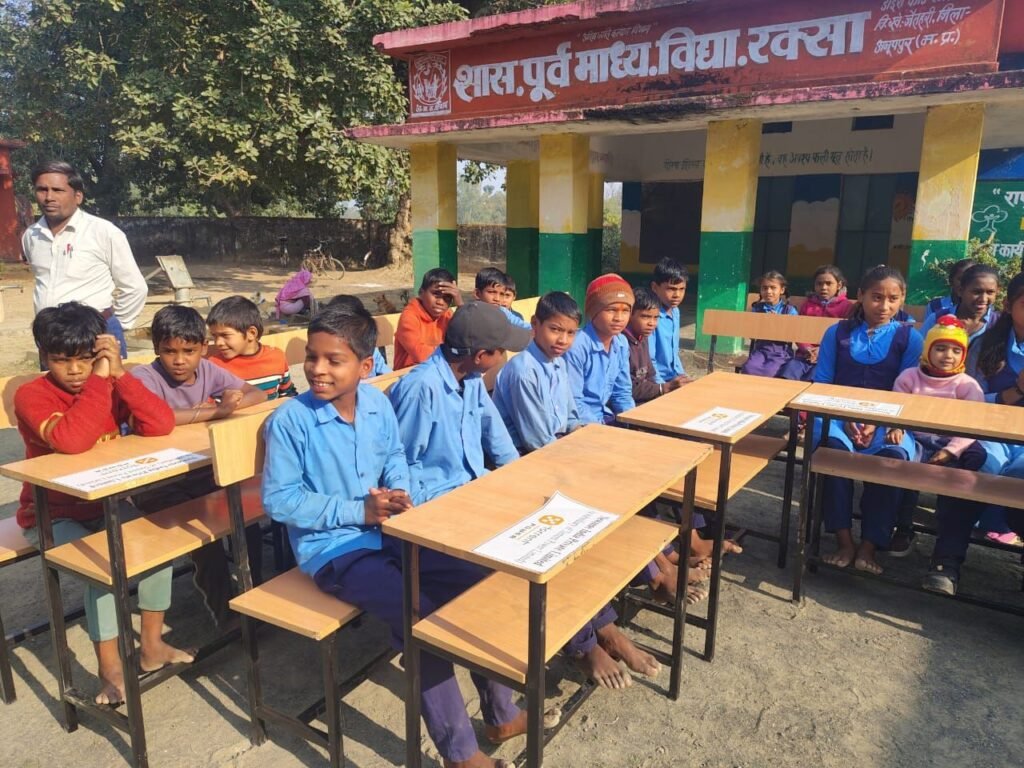 अनूपपुर। जिले के ग्राम रक्सा स्थित शासकीय माध्यमिक विद्यालय में न्यू जोन इंडिया टोरेंट पावर कंपनी द्वारा विद्यार्थियों की सुविधा को ध्यान में रखते हुए एक सराहनीय कदम उठाया गया। कंपनी ने विद्यालय में अध्ययनरत छात्र-छात्राओं के लिए 40 टेबल एवं 40 बेंच निःशुल्क प्रदान किए, जिससे कक्षाओं में बैठने की व्यवस्था सुदृढ़ हुई है।