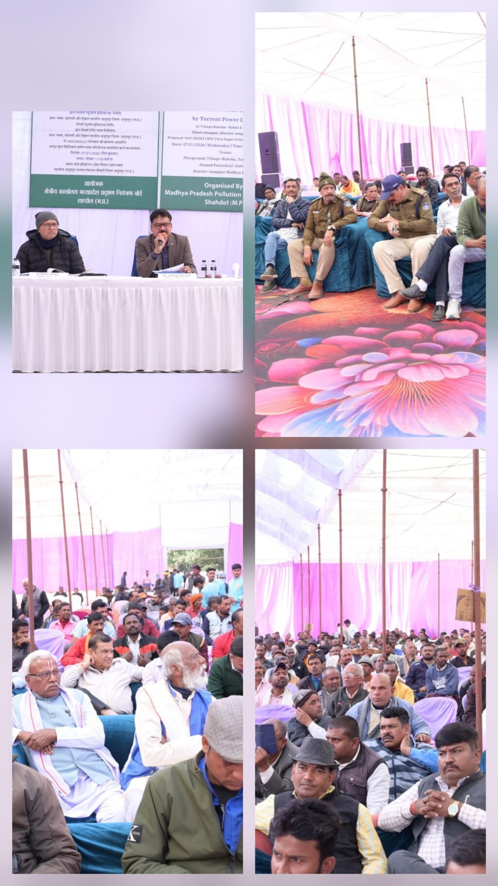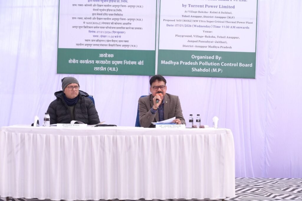 अनूपपुर जिले के रक्सा–कोलमी क्षेत्र में प्रस्तावित अल्ट्रा सुपर क्रिटिकल थर्मल पावर परियोजना को लेकर आयोजित पर्यावरणीय जनसुनवाई बुधवार को सौहार्दपूर्ण एवं अनुशासित वातावरण में संपन्न हुई। यह जनसुनवाई न्यू जोन इंडिया प्राइवेट लिमिटेड (अनुषंगी: टोरंट पावर लिमिटेड) द्वारा प्रस्तावित परियोजना के लिए मध्य प्रदेश प्रदूषण नियंत्रण बोर्ड, शहडोल के मार्गदर्शन में ग्राम रक्सा के खेल मैदान में आयोजित की गई।