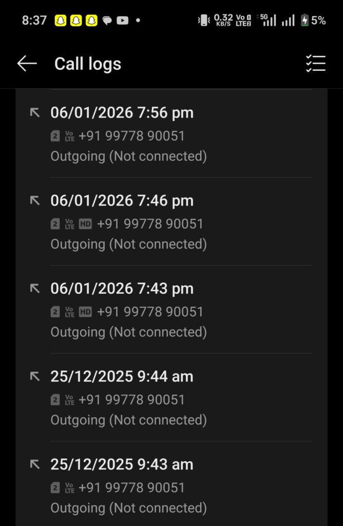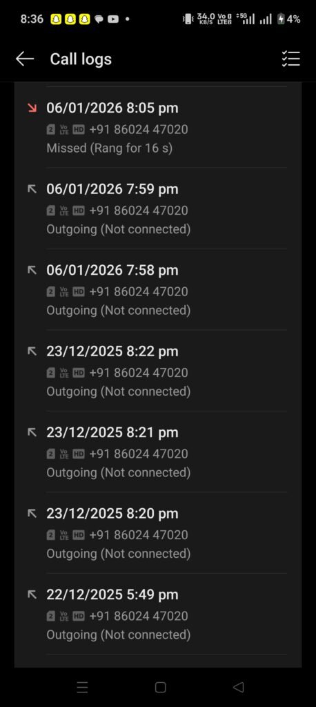 हालांकि उस समय कॉल कनेक्ट नहीं हो पाया, जिसका स्क्रीनशॉट समाचार के साथ संलग्न किया जा रहा है, ताकि यह स्पष्ट हो सके कि सूचना देने का प्रयास वास्तविक था।