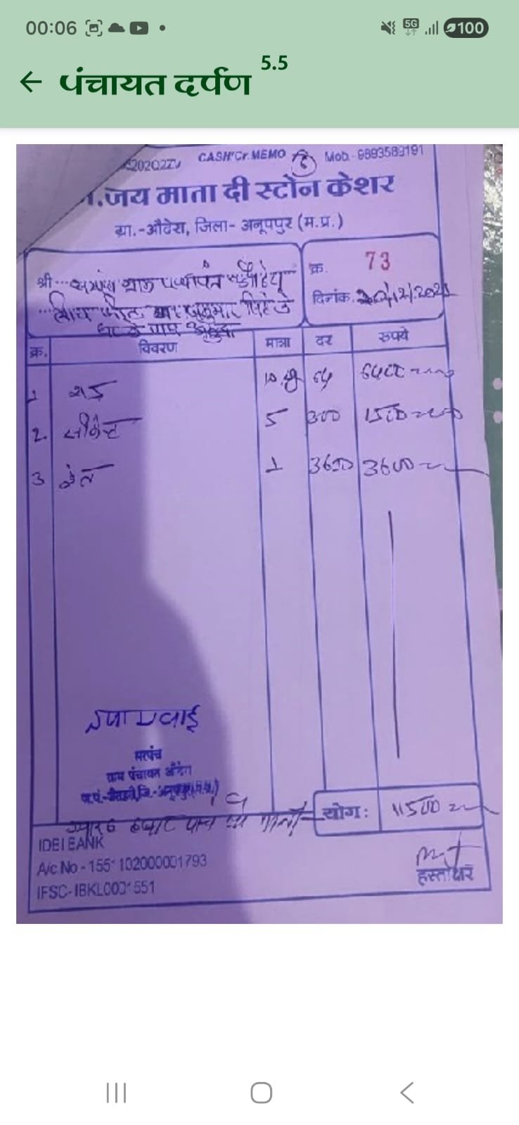 सामग्री की दर कॉलम में सामान्य बाजार मूल्य दर्ज किया जाता है, लेकिन कुल भुगतान की राशि जानबूझकर कई गुना बढ़ा दी जाती है। इसी तकनीकी चाल का फायदा उठाकर पंचायत से भुगतान आहरित कर लिया गया।