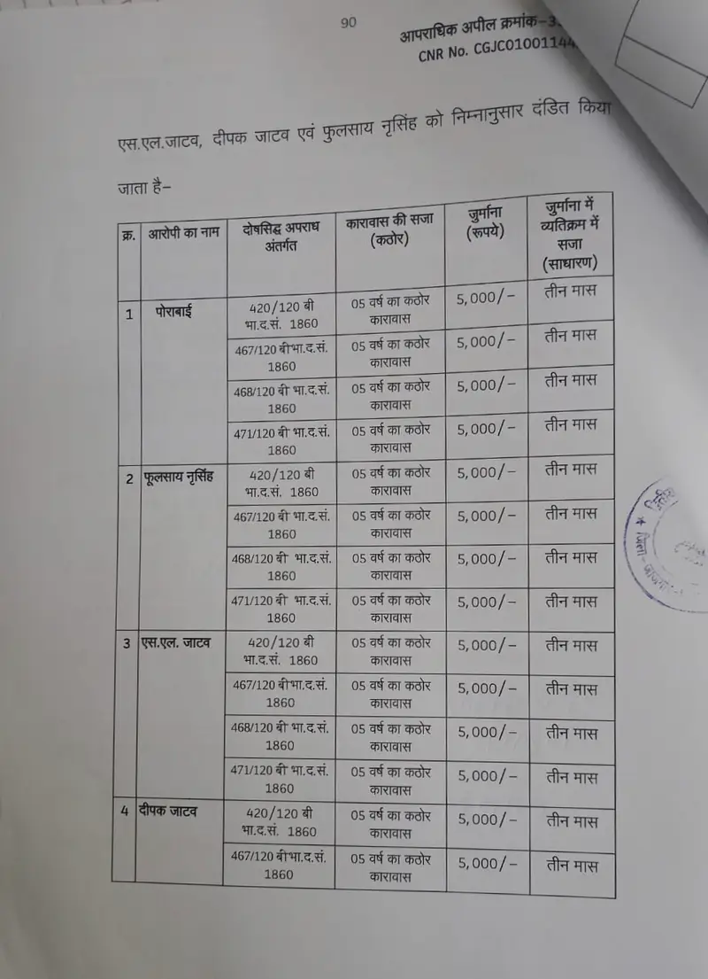 18 साल पुराने बहुचर्चित पोराबाई नकल प्रकरण में बड़ा फैसला – मुख्य आरोपी सहित चार दोषियों को 5-5 साल की कठोर कारावास की सजा