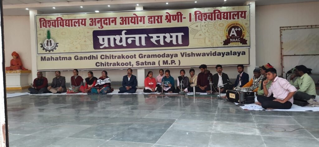 चित्रकूट, 30 जनवरी 2026। महात्मा गांधी चित्रकूट ग्रामोदय विश्वविद्यालय के विवेकानन्द सभागार में शुक्रवार को मासिक प्रार्थना सभा संपन्न हुई। इस कार्यक्रम में शिक्षक, अधिकारी, कर्मचारी और छात्र छात्राएं उपस्थित रही। ओ३म् (ॐ) उच्चारण सरस्वती वंदना, कुल गीत बी०ए० समूह प्रथम वर्ष ने प्रस्तुत की।भगवत् गीता के श्लोक, भावार्थ अमन मिश्रा ने प्रस्तुत किए। महापुरुष के जीवन दर्शन के रूप में सुभाषचन्द्र बोस की जीवनी आशीष ने पढ़ी। एकल गायन के रूप भजन आकांक्षा ने प्रस्तुत किया। पर्यावरण प्रदूषण विषय को वैष्णवी त्रिपाठी ने रेखांकित किया। सूचना एवं जानकारी के क्रम में मासिक प्रतिवेदन को प्रो० साधना चौरसिया उपकुलसचिव, अकादमी ने पढ़ा। समूह गायन की संस्कृत भाषा में प्रस्तुति बी०ए० समूह प्रथम वर्ष ने की। अध्यक्षीय उद्बोधन कुलसचिव प्रो आर सी त्रिपाठी ने दिया।सामूहिक रघुपति राघव राजा राम का सामूहिक भजन से कार्यक्रम का विराम हुआ। आशुमान, आशीष, श्लोक, अमन, आकांक्षा, स्नेहा, वैष्णवी इस कार्यक्रम के प्रतिभागी रहे कार्यक्रम संचालन श्लोक द्विवेदी संगीत इकाई ने किया। संयोजन डॉ विवेक फड़नीस ने किया।