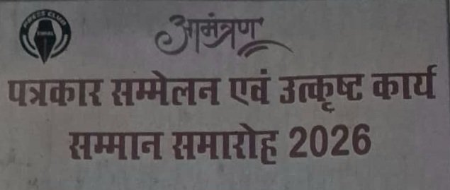 धरमजयगढ़ /छाल – प्रेस क्लब छाल द्वारा वर्ष 2026 के अंतर्गत पत्रकार सम्मेलन एवं उत्कृष्ट कार्य सम्मान समारोह का आयोजन किया जा रहा है। यह कार्यक्रम 07 फरवरी 2026 को दोपहर 1 बजे से मंगल भवन, छाल में आयोजित होगा। प्रेस क्लब छाल द्वारा धरमजयगढ़ विधानसभा में विभिन्न क्षेत्रों में उत्कृष्ट कार्य करने वाले व्यक्तियों को सम्मानित किया जाएगा। आयोजकों के अनुसार यह कार्यक्रम पत्रकारिता के साथ-साथ सामाजिक, प्रशासनिक एवं जनसेवा के क्षेत्र में उल्लेखनीय योगदान देने वालों के सम्मान हेतु रखा गया है। कार्यक्रम में मुख्य अतिथि के रूप में रायगढ़ सांसद राधेश्याम राठिया एवं धरमजयगढ़ विधायक लालजीत सिंह राठिया शामिल होंगे। वहीं प्रशासनिक अतिथि के रूप में वन मंडल अधिकारी धरमजयगढ़ जितेंद्र उपाध्याय, छाल तहसीलदार लोमेश मिरी एवं मुख्य कार्यपालन अधिकारी जनपद पंचायत धरमजयगढ़ मदन लाल साहू की उपस्थिति रहेगी। इसके अतिरिक्त कार्यक्रम में भाजपा व कांग्रेस के जिला स्तर के पदाधिकारी, जनप्रतिनिधि, सामाजिक कार्यकर्ता एवं गणमान्य नागरिक विशेष अतिथि के रूप में शामिल होंगे। प्रेस क्लब छाल ने क्षेत्र के जनप्रतिनिधियों, अधिकारियों एवं नागरिकों से कार्यक्रम में उपस्थिति की अपील की है।