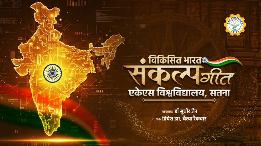 एकेएस विश्वविद्यालय, सतना ने भारत सरकार के विकसित भारत विज़न–2047 को साकार करने की दिशा में एक सशक्त सांस्कृतिक एवं बौद्धिक पहल करते हुए ‘विकसित भारत संकल्प गीत’ का लोकार्पण किया। यह गीत दिनांक 29 अप्रैल 2026 को विधिवत रूप से राष्ट्र को समर्पित किया गया।