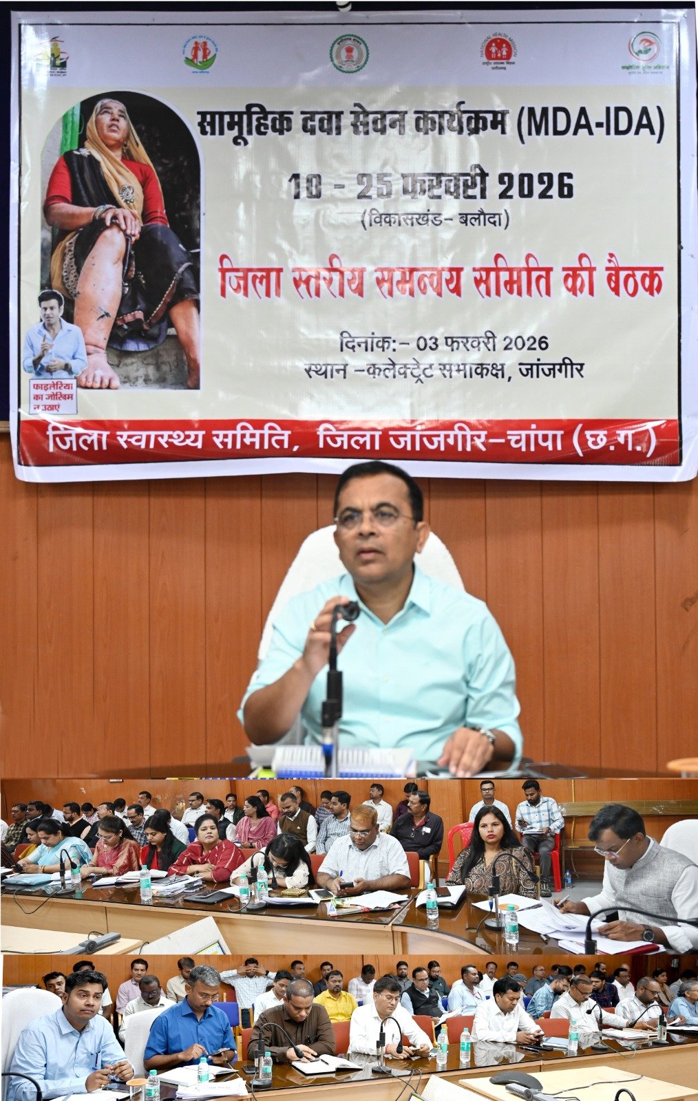 कलेक्टर श्री जन्मेजय महोबे की अध्यक्षता में राष्ट्रीय फाइलेरिया उन्मूलन कार्यक्रम के संबंध में बैठक आयोजित, राष्ट्रीय फाइलेरिया उन्मूलन कार्यक्रम अंतर्गत सामूहिक दवा सेवन कार्यक्रम 10 से 25 फरवरी 2026 तक,
