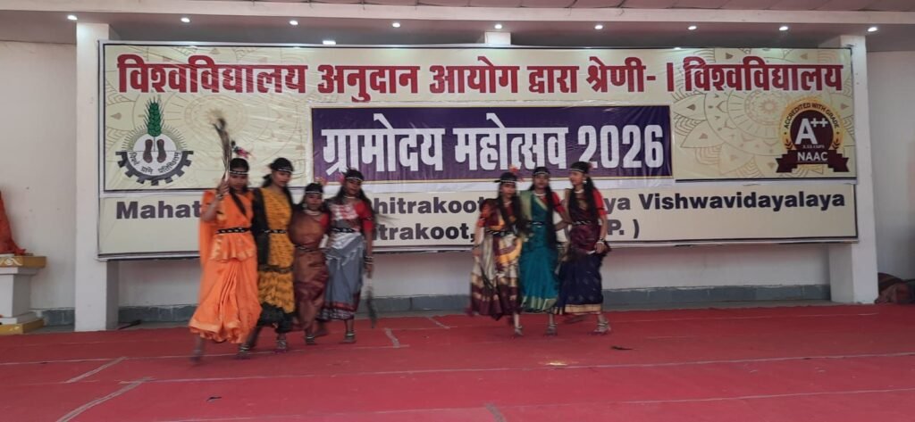 इन प्रस्तुतियों में स्वरजिका पंडा, दीपन्नीता, मान्या सिंह, अंकिता एवं साथी, भारती सिंह एवं साथी, ज्योति पटेल एवं साथी, आराधना एवं समूह, उज्ज्वला कुमारी एवं साथी, राशिका एवं समूह, कनकवर्धन , अंकिता सेन एवं समूह, ईशू सिंह, स्तुति मिश्रा, जसस्विनी, निवेदिता वर्मा, प्रियांशु ताम्रकार, यामिनी तुरकर सहित विभिन्न संकायों के विद्यार्थियों ने सहभागिता की। कार्यक्रम का संयोजन डॉ विवेक फड़नीस और प्रभावी संचालन यामिनी तुरकर (बी. ए.बी.एड. ) द्वारा किया गया। अंत में कुलसचिव प्रो. रमेशचंद्र त्रिपाठी ने आभार प्रदर्शन किया। सामूहिक वंदे मातरम् – राष्ट्रगान एवं समापन घोषणा के साथ पंच दिवसीय ग्रामोदय महोत्सव का सफल समापन हुआ।