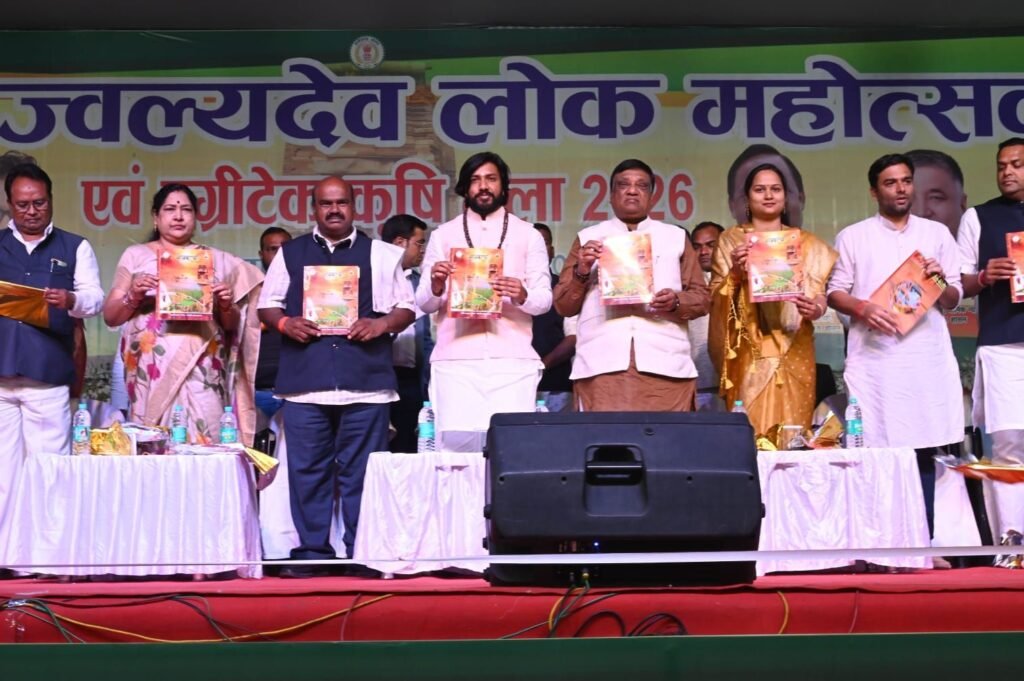 कौशल विकास तकनीकी शिक्षा मंत्री श्री गुरु खुशवंत साहेब के मुख्य आतिथ्य में तीन दिवसीय जाज्वल्यदेव लोक महोत्सव एवं एग्रीटेक कृषि मेला का हुआ समापन एग्रीटेक कृषि मेला 2026 से आत्मनिर्भरता और तकनीकी समृद्धि की नई राह खुलेगी – श्री गुरु खुशवंत साहेब आधुनिक तकनीक और लोक संस्कृति के संगम से विकसित छत्तीसगढ़ का संकल्प अतिथियों ने जाज्वल्या 2026 स्मारिका का किया विमोचन