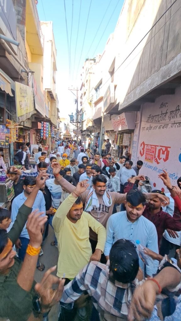 जैन बगीची से निकली भव्य शोभायात्रा :—- जलाभिषेक से पहले जैन बगीची परिसर से विशाल शोभायात्रा निकाली गई। शोभायात्रा परेड चौराहा, अटल पार्क, उसेद रोड, पोरसा चौराहा, डायवर्सन रोड, जय हिंद कॉलेज, जग्गा चौराहा, मुरैना तिराहा, नगर पालिका चौराहा, सदर बाजार गंज, पुरानी गली और पुरानी तहसील होते हुए पुनः पीएचई परिसर स्थित शिव मंदिर पहुंची। पूरे मार्ग में हजारों श्रद्धालु शोभायात्रा में शामिल हुए। एक सैकड़ा से अधिक स्थानों पर सामाजिक संगठनों, व्यापारियों, समाजसेवियों एवं जनप्रतिनिधियों ने कावड़ का स्वागत कर कावड़ियों का सम्मान किया। लगभग आधा सैकड़ा स्थानों पर फल, जलपान एवं प्रसाद वितरण कर सेवा की गई। रंग-बिरंगी आकर्षक लाइटिंग से सजी कावड़ का रात्रिकालीन दृश्य अत्यंत भव्य और मनमोहक दिखाई दिया। श्रद्धालु “बाबा नगरिया दूर है जाना जरूर है”, “बोल बम का नारा है, बाबा एक सहारा है” जैसे भजनों पर झूमते और नृत्य करते नजर आए। युवाओं और बच्चों में कावड़ के साथ फोटो व सेल्फी लेने का विशेष उत्साह देखा गया।