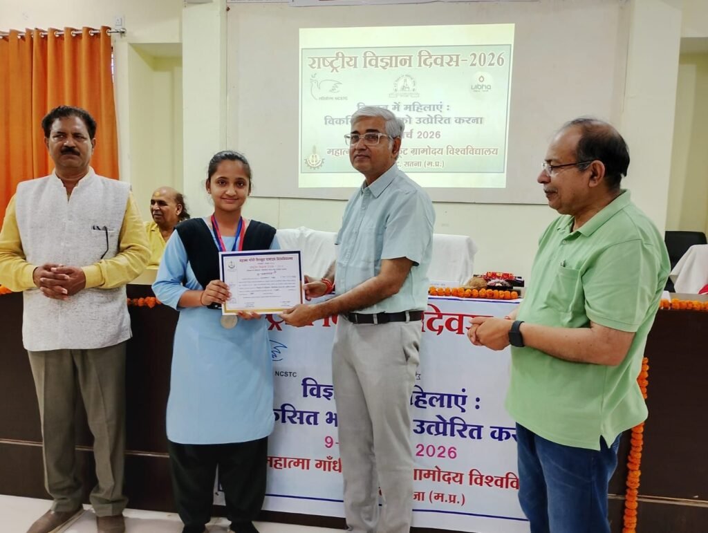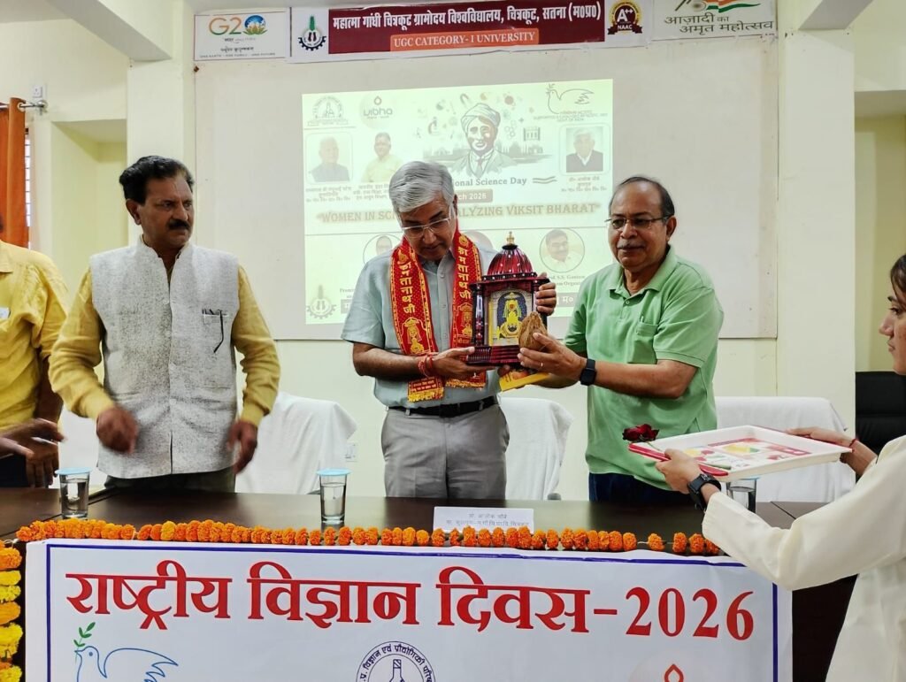 चित्रकूट/सतना- 10 मार्च 2026। मध्यप्रदेश विज्ञान एवं प्रौद्योगिकी परिषद, भोपाल द्वारा प्रायोजित दो दिवसीय राष्ट्रीय विज्ञान दिवस–2026 का समापन आज महात्मा गांधी चित्रकूट ग्रामोदय विश्वविद्यालय के वाल्मीकि सभागार में कुलगुरु प्रो. आलोक चौबे की गरिमामयी उपस्थिति में हर्षोल्लास के साथ सम्पन्न हुआ।