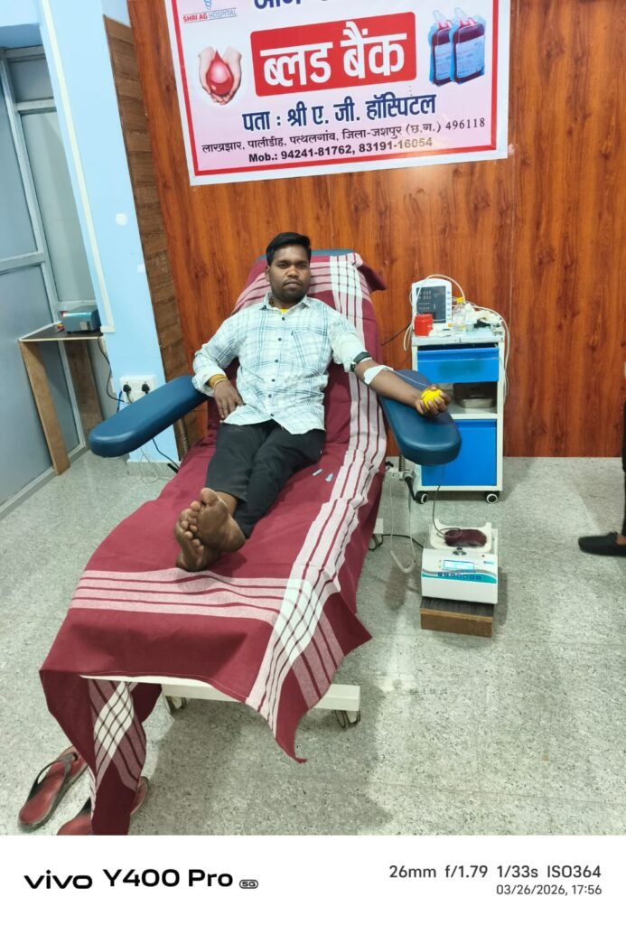 स्थानीय क्षेत्र में समाजसेवा का एक प्रेरणादायक उदाहरण उस समय देखने को मिला, जब नागवंशी कल्याण युवा समिति के सदस्यों ने श्री ए.जी हॉस्पिटल में ओम ब्लड सेंटर के उद्घाटन अवसर पर रक्तदान कर मानवता का संदेश दिया। उद्घाटन के दिन ही समिति के युवाओं द्वारा 4 से 5 यूनिट रक्तदान किया गया, जिससे कार्यक्रम का महत्व और भी बढ़ गया।