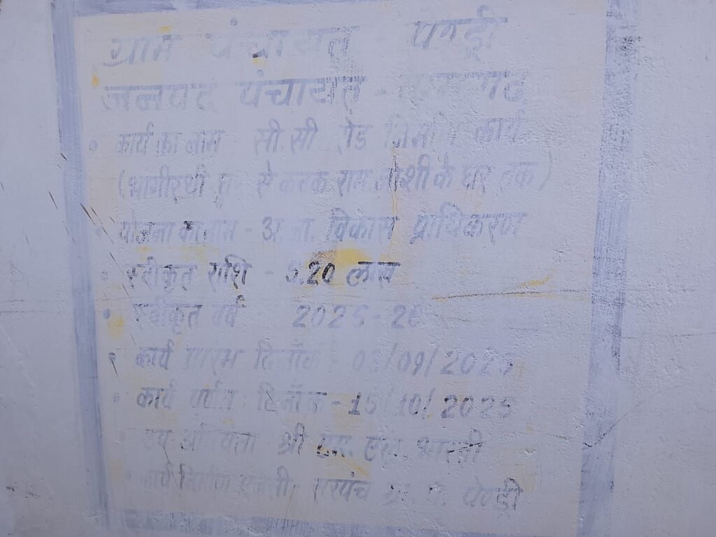 тАв  рдХрд╛рд░реНрдп рдХрд╛ рдирд╛рдо: рд╕реА.рд╕реА. рд░реЛрдб рдирд┐рд░реНрдорд╛рдг рдХрд╛рд░реНрдп (рднрдЧреАрд░рдереА рдШрд░ рд╕реЗ рдХрдирдХ рд░рд╛рдо рдЬреЛрд╢реА рдХреЗ рдШрд░ рддрдХ)