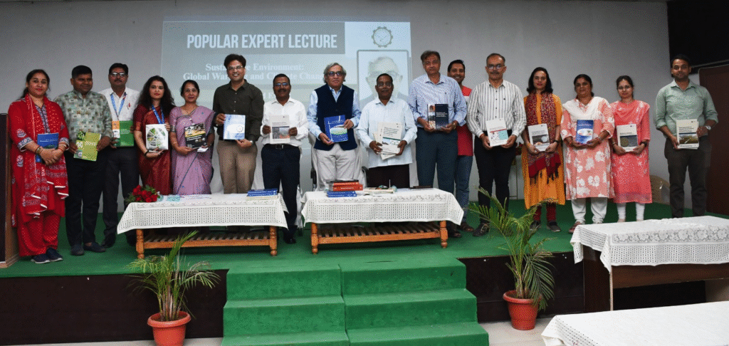 प्रो. अशोक पांडे ने आर्कटिक क्षेत्र, दक्षिणी यूरोप एवं एशिया में बढ़ते तापमान, हिमालयी ग्लेशियरों के पिघलने, बाढ़-प्रभावित क्षेत्रों, इंटरगवर्नमेंटल पैनल आन क्लाइमेट चेंज के निष्कर्षों तथा ब्राजील कन्वेंशन एवं सस्टेनेबल डेवलपमेंट गोल्स जैसे वैश्विक प्रयासों का उल्लेख करते हुए वर्तमान पर्यावरणीय संकट की गंभीरता को रेखांकित किया।